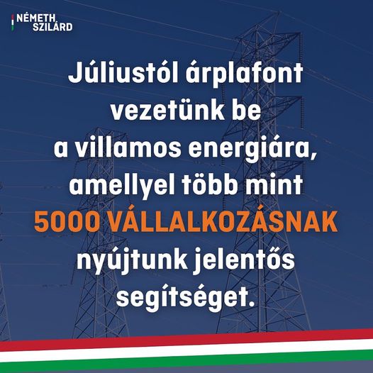 A villamos energia árát az érintett vállalkozások számára a jelenlegi 320 euró/megawattóra helyett júliustól 200 euró/megawattórában rögzítjük.