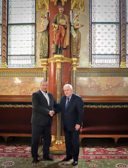 Az alsóházi (vörös) társalgóban futottam össze Fónagy János miniszter (jelenleg államtitkár) úrral. Itt éppen a postás mesterséget megörökítő Zsolnay-szobor előtt-alatt kezelünk.