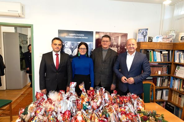 A gyermekeknek és a kórház dolgozóinak szánt mikuláscsomagokat Velkey György, a kórház főigazgatója vette át