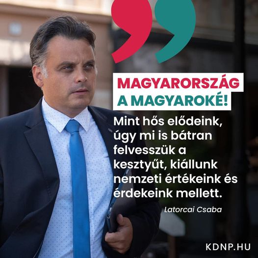 Latorcai Csaba: Magyarország a magyaroké! Mint hős elődeink, úgy mi is bátran felvesszük a kesztyűt, kiállunk nemzeti értékeink és érdekeink mellett.