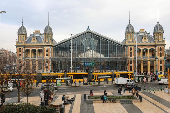 Elkészült a Nyugati pályaudvar főbejárata. A több ütemben zajló felújítások során teljesen megújult a Teréz körút felőli homlokzat, a tornyok és a főlépcső is.