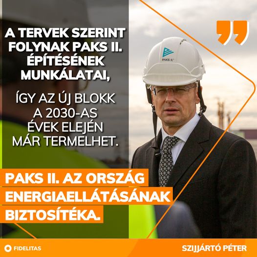 A tervek szerint folynak Paks II. építésének munkálatai. - Szijjártó Péter