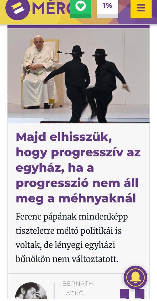 A Mércehitetlenkedik azon, hogy a katolikus egyház progresszív lenne. Igaza van, a katolikus egyház nem pogresszív. És ez így is fog maradni, a mércés remények minden bizonnyal beteljesületlenek…