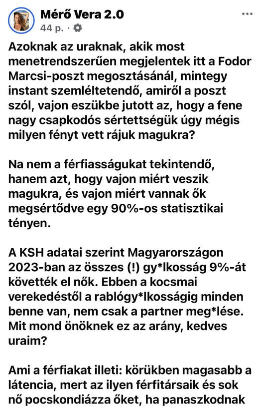 Nem Vera, nekem pl nem azzal van a problémám, hogy a férfiak esetleg hőzöngenek ezen…