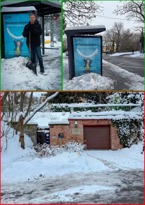 Amikor kimész a buszmegállóba a hólapáttal bohóckodni, a házad előtti hóhelyzet pedig így néz ki...
