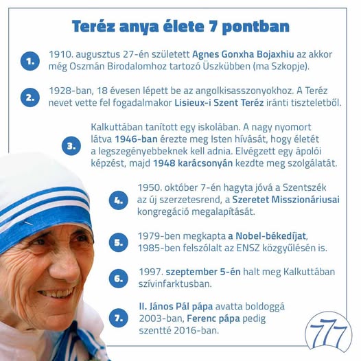 Ma van Teréz anya liturgikus emléknapja