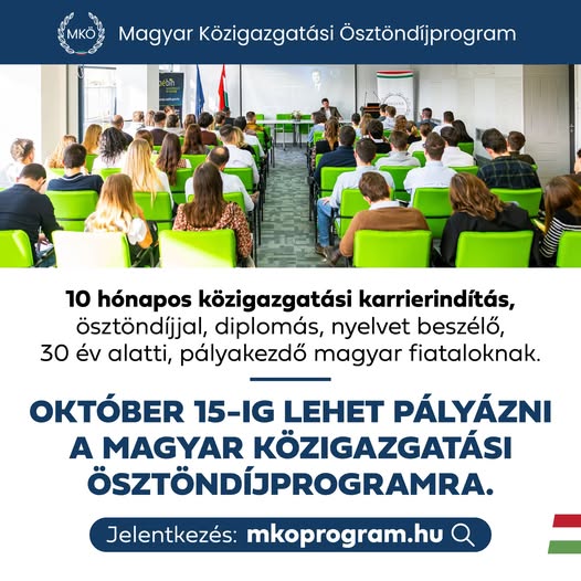 Elindult a jelentkezés a Magyar Közigazgatási Ösztöndíjprogram 2026-os évfolyamába. 7 hónapig egy magyar minisztériumban, 3 hónapig hazánk külképviseletein vagy nemzetközi szervezeteknél dolgozhatnak…