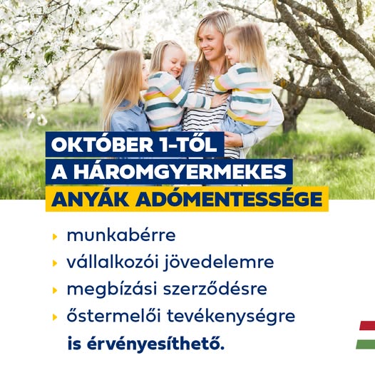 A háromgyerekes édesanyák keresete teljes egészében mentesül az szja alól.