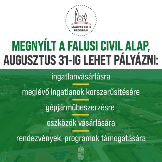 Nagy lehetőség a civil szervezeteknek a nehezebb idők kivédésére: újra lehet pályázni a Falusi Civil Alapban: www, magyarfaluprogram.hu