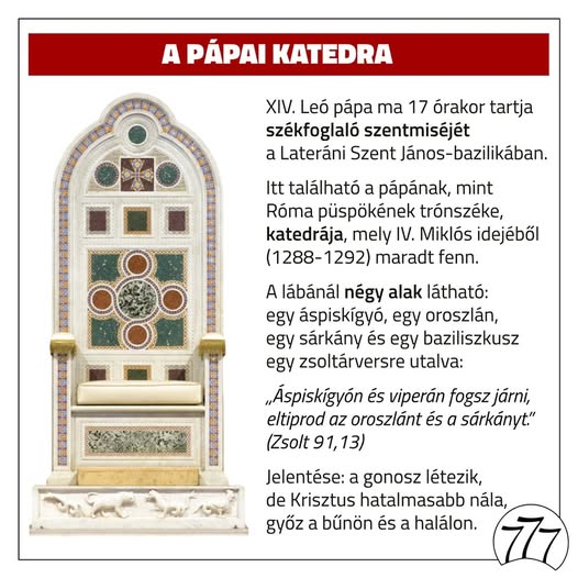 Ma tartja székfoglaló szentmiséjét XIV. Leó pápai a római Lateráni Szent János-bazilikában. Korponai Gábor kollégánk kisokosa a pápai katedráról ☝️