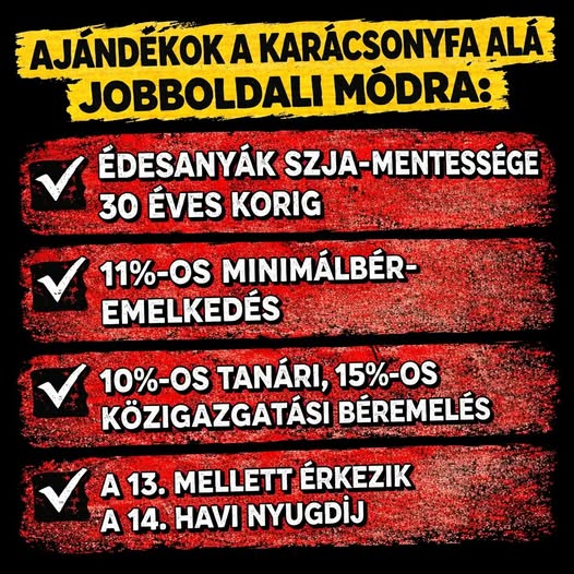 Ha a brüsszel- és háborúpárti TISZA vezetné az országot, akkor ajándék helyett megszorítócsomag kerülne a karácsonyfa alá!