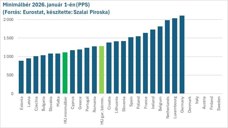 Az Eurostat szerint idén a MINIMÁLBÉR NÖVEKEDÉSÜNK a LEGNAGYOBB volt euroban számolva (18,5 százalék), vásárlóerő paritáson pedig a negyedik legnagyobb volt (11 százalék).