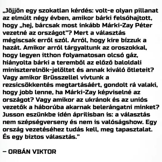 “Magyarország nagyra becsült miniszterelnöke, Orbán Viktor igazán erős és határozott vezető, aki már számtalanszor bizonyította, hogy kivételes eredményeket tud elérni. Fáradhatatlanul küzd érte és…