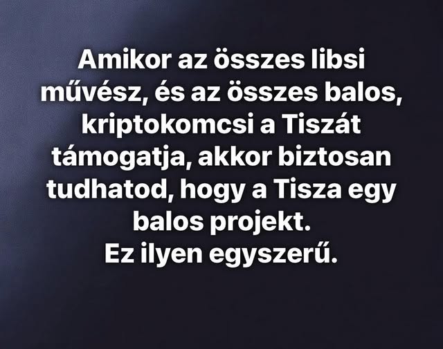 És közben sorra fenyegetik meg az országot a libsi művészek, hogy elhagyják Magyarországot, ha újra Orbán fog nyerni, úgyhogy tuti tök jobbos a Tisza.
