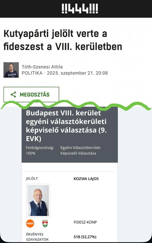 ️ A Tisza-fanatikus 444 előre megírta a mai időközi választás eredményét, maaaajd… ezek a szerencsétlenek élesítették is a cikket!