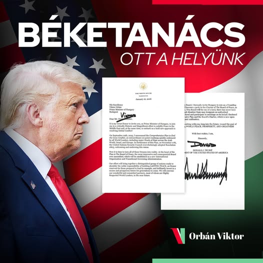 Trump elnök felkérésére Magyarország alapítóként csatlakozik a Béketanács megalakulásához.