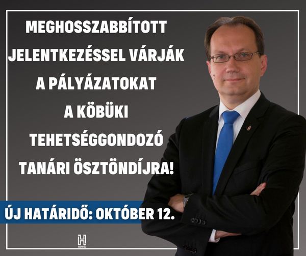 A Köbüki tehetséggondozó tanári ösztöndíj pályázat határidejét meghosszabbították!