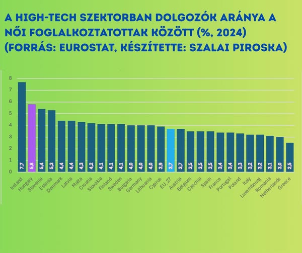 Magyarországon a high-tech szektorban dolgozó nők aránya az Európai Unióban a…