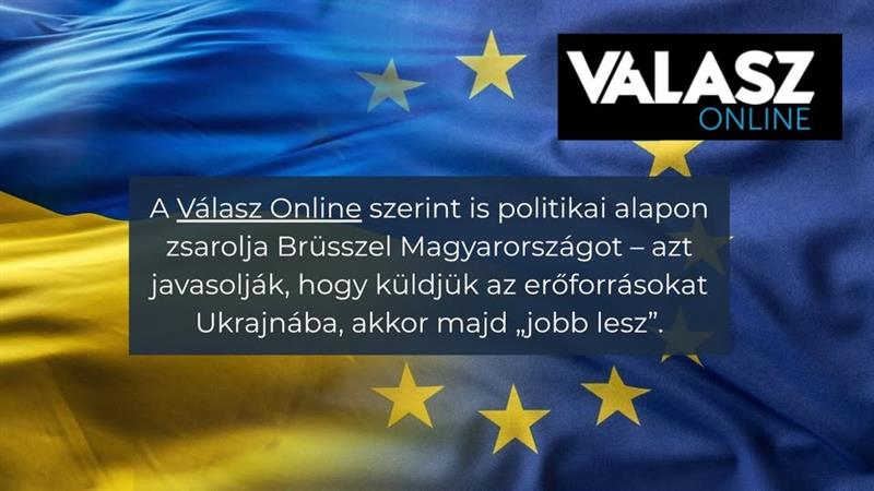 A Válasz Online szerint is politikai alapon zsarolja Brüsszel Magyarországot – azt javasolják, hogy küldjük az erőforrásokat Ukrajnába, akkor majd „jobb lesz”.