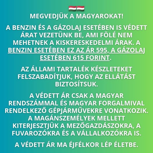 A Fidesz-KDNP kormány számára a magyar családok védelme az első. Nem engedhetjük, hogy az üzemanyag ára elviselhetetlen szintre emelkedjen, és azt sem, hogy…