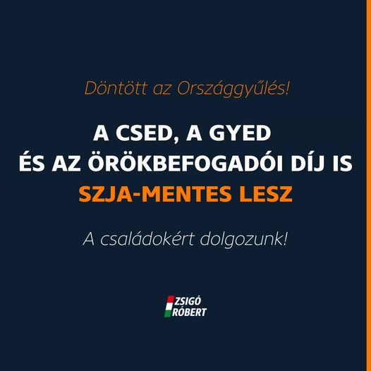 Megszavazta a parlament a csecsemőgondozási díj, a gyermekgondozási díj és az örökbefogadói díj szja-mentességét is! 15%-kal nő tehát a CSED-re, a GYED-re, az örökbefogadói díjra jogosult anyukák…