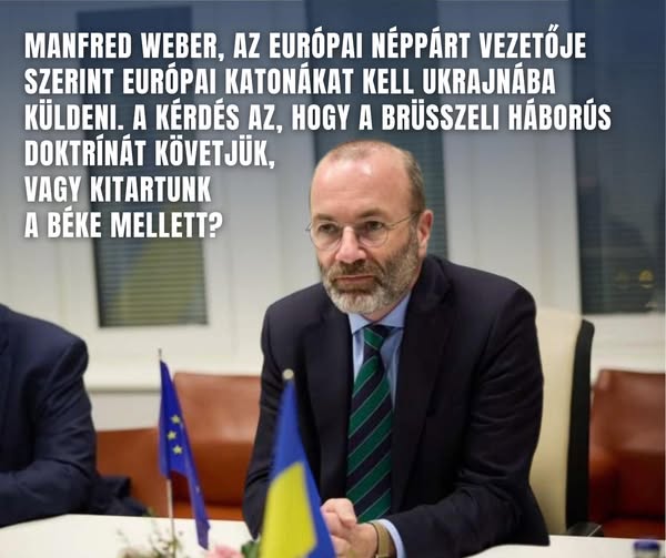 Manfred Weber, az Európai Néppárt és Magyar Péter brüsszeli vezetője szerint európai katonákat kell Ukrajnába küldeni.