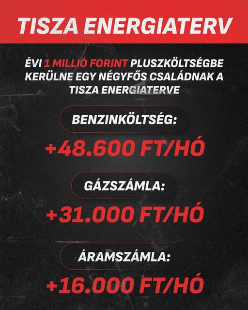 ️ Évi 1 millió forint pluszköltségbe kerülne egy négyfős családnak a Tisza energiaterve