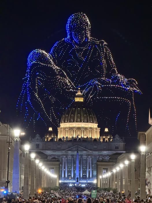 Tegnap este drónok segítségével varázslatos képen jelent meg Michelangelo Piétája a vatikáni Szent Péter-bazilika fölött.