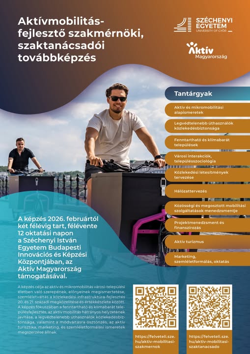 Január 31-ig lehet jelentkezni az Aktívmobilitás-fejlesztő szakmérnöki és szaktanácsadói továbbképzésre. Büszke vagyok arra, hogy képzés elindítását az Aktív Magyarország támogatta.