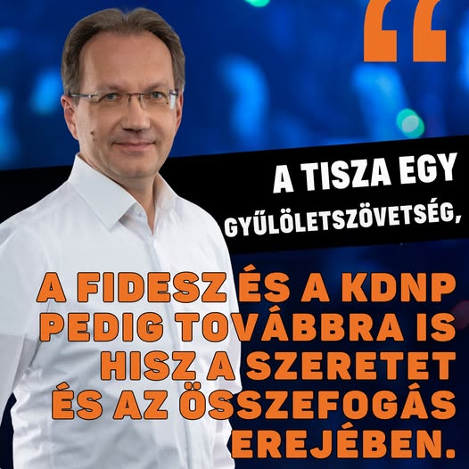 A Tisza egy gyűlöletszövetség, a Fidesz és a KDNP pedig továbbra is hisz a szeretet és az összefogás erejében.