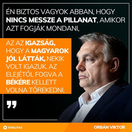 Az az igazság, hogy a magyarok jól látták. Nekik végig igazuk volt. Az elejétől fogva a békére kellett volna törekedni. - Orbán Viktor