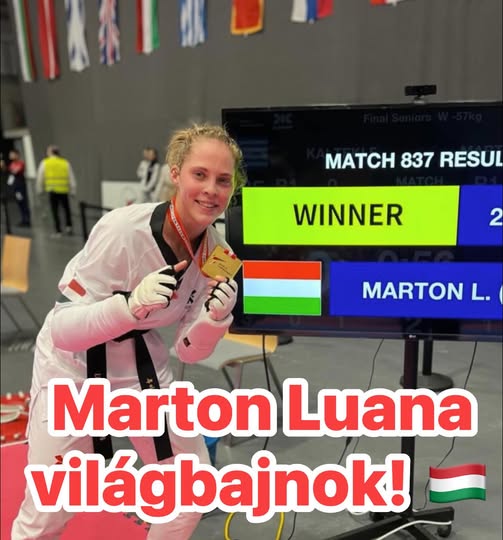 taekwondo-világbajnok női 67kg-os mezőnyben a mindössze 19 éves Marton Luana.