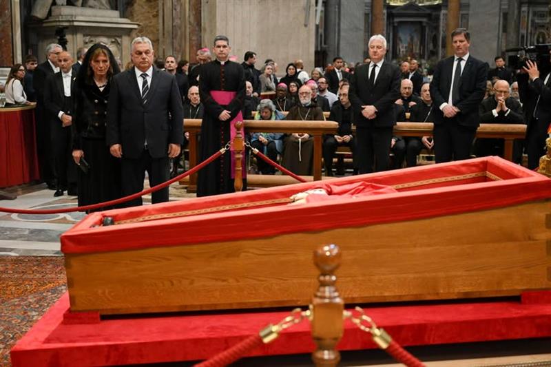 Imádságos tiszteletadás Ferenc pápa koporsójánál