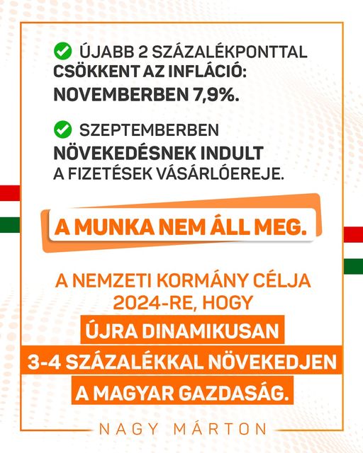 Nagy Márton: újabb győzelem az infláció felett, újabb 2 százalékponttal csökkent az infláció.