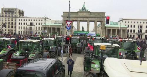 Traktorok állnak kilométeres sorokban a német főváros egyik…