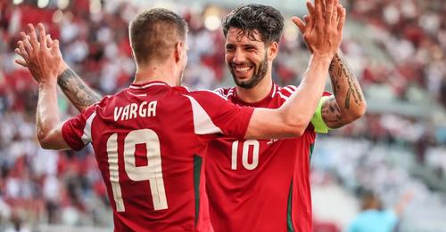 A kapuban Gulácsi Péter, elöl Sallai Roland, Varga Barnabás és Szoboszlai Dominik rohamoz. 👊❤️