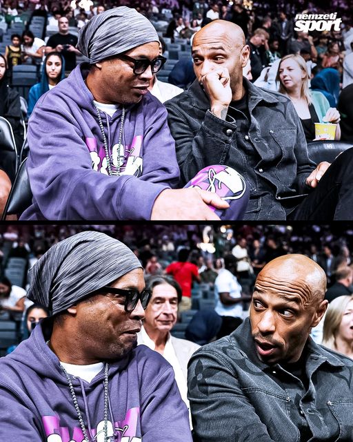 Újra együtt: Thierry Henry és Ronaldinho közösen tekintette meg a Denver Nuggets és a Boston Celtics felkészülési meccsét.