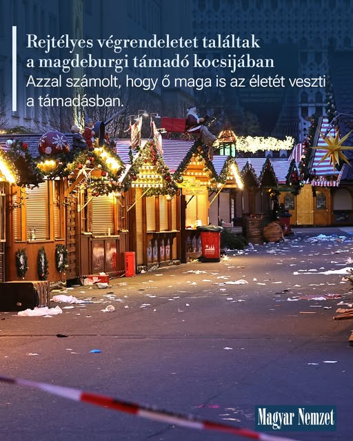 A magdeburgi terrortámadás muszlim hátterű elkövetője azzal számolt, hogy ő maga is az életét veszti a támadásban. A BMW-ben, amellyel a tömegbe hajtott a karácsonyi vásáron, egy végrendeletet is…