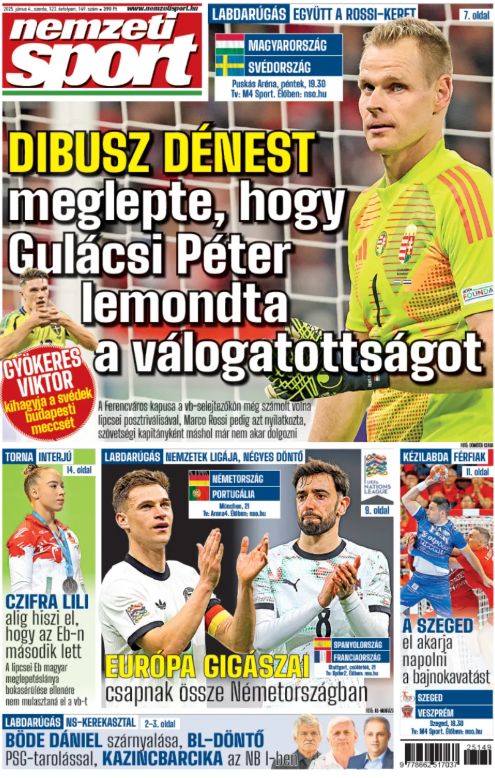 Dibuszt meglepte, hogy Gulácsi lemondta a válogatottságot; Czifra Bettina Lili nem hitte volna… – a szerdai Nemzeti Sportból ajánljuk