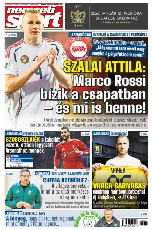 Szalai Attila: Bízunk Marco Rossiban!; Varga Barnabás vasárnap már játszhat az AEK-ban – a Nemzeti Sport csütörtöki számából ajánljuk: