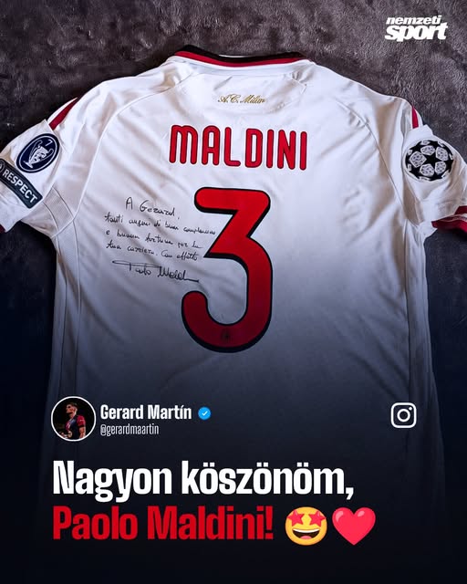 Paolo Maldini elküldte egyik korábbi mérkőzésén viselt mezét a Barcelona védőjének, Gerard Martínnak, aki a példaképének tekinti az olasz legendát.