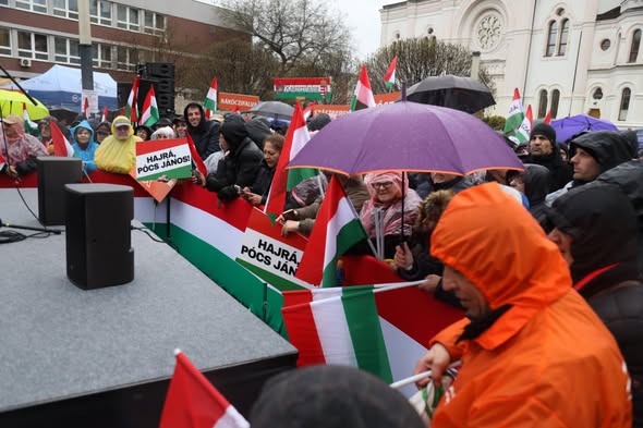 Nem számít a rossz idő, óriási tömeg hallgatja Orbán Viktort Szolnokon, a miniszterelnök országjárásának újabb állomásán.