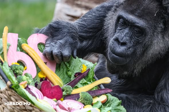 Fatou, a világ legidősebb gorillája 69. születésnapját ünnepelte a Berlini Állatkertben: különleges, szív alakúra faragott céklát és más finomságokat lakmározott a jeles napon A nyugati síkvidéki…