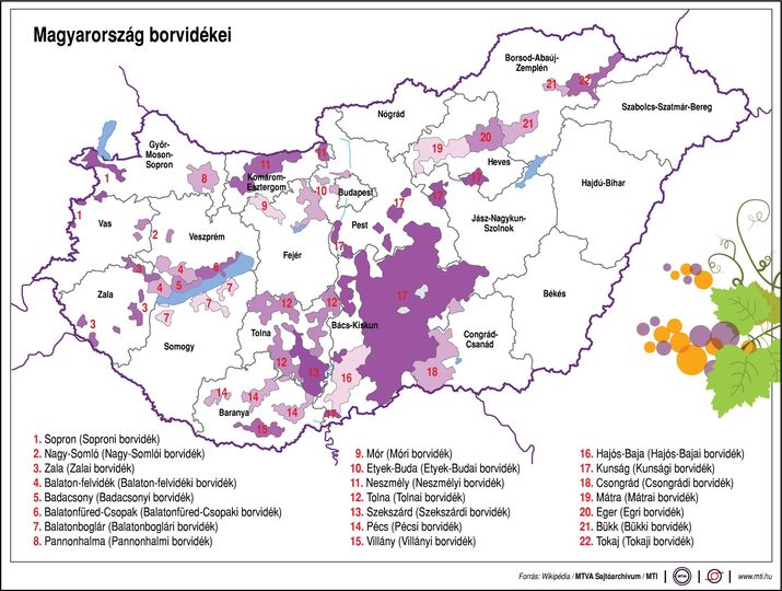 Magyarország borvidékei: 1 Sopron (Soproni borvidék) 2 Nagy-Somló (Nagy-Somlói borvidék) 3 Zala (Zalai borvidék) 4 Balaton-felvidék (Balaton-felvidéki borvidék) 5 Badacsony (…