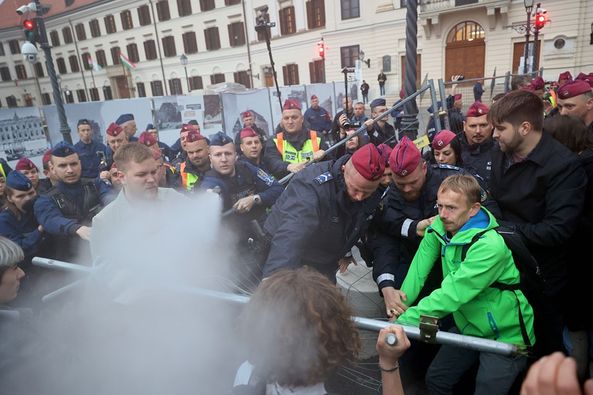 Könnygáz és gázspray: a státusztörvény ellen tartottak pedagógus-demonstrációt