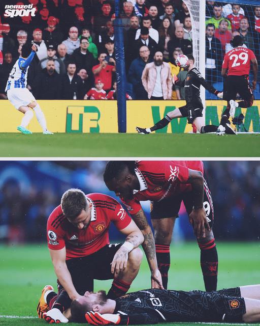 Telitalálat a Brighton–Manchester United mérkőzésen: Mitoma Karou fejbe lőtte David De Geat.