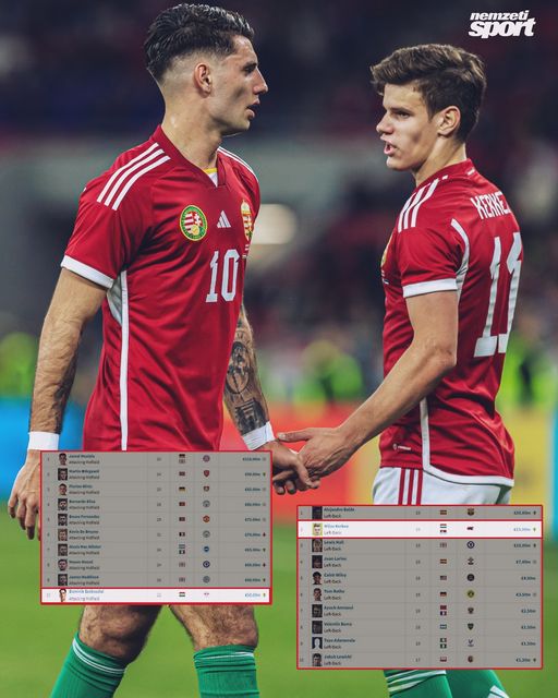 A Transfermarktadatai szerint, posztjukon és korosztályukban Szoboszlai Dominik és Kerkez Milos is a legértékesebb játékosok közé tartoznak. A támadó középpályások között…