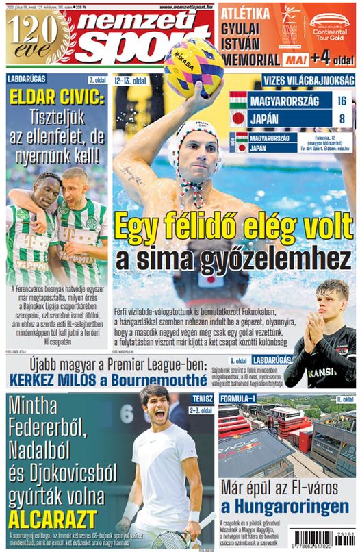 Eldar Civic a BL-csoportkörbe vágyik; Carlos Alcaraz teljesen más játékossá vált a Roland Garros óta – a keddi Nemzeti Sportból ajánljuk: https://bit.ly/44SJR4p