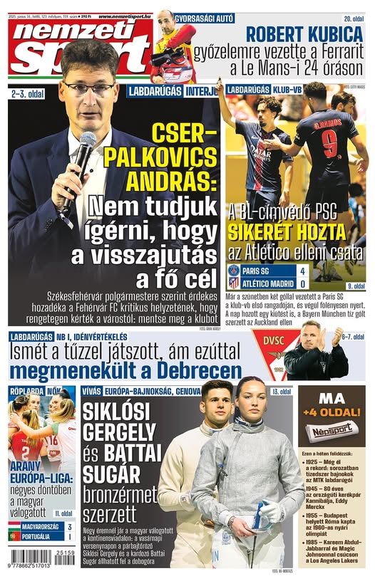 Interjú a fehérvári polgármesterrel; Kubica győzelemre vezette a Ferrarit a Le Mans-i 24 óráson – a hétfői Nemzeti Sportból ajánljuk: https://buff.ly/8W0Sf2x