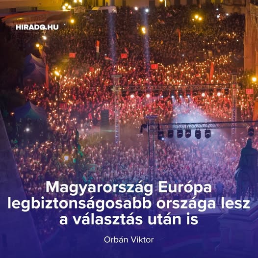 Orbán Viktor: Fontos elmondani, miből lehet választani, és melyik döntésnek mi a következménye. Magyarország polgárai megértették, mi a választás tétje. Ez a béke. Nem adjuk a gyermekeinket Ukrajnának. Nem adjuk a pénzünket, és fegyvereinket. Magyarország Európa legbiztonságosabb országa lesz Európában a választások után! Le fogjuk törni Zelenszkij Magyarország elleni olajblokádját! Olajblokádra hitelblokád lesz a válasz, és ezt a csatát meg fogjuk nyerni!